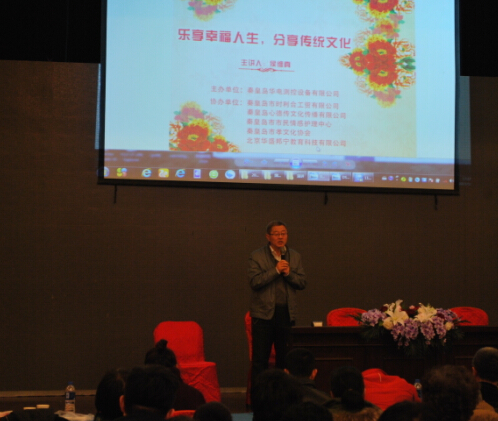 本次講座由河北省政協委員、秦皇島市工商聯副會長、秦皇島金維達機械有限公司董事長、“善人道”團隊隊員――侯維真老師及其團隊全程策劃,侯老師及其團隊成員,為大家感情真摯、言辭懇切地分享了自己學習傳統文化的真知灼見,與會人員無不受益,會場掌聲此起彼伏、高潮迭起;動情之處,會場許多人一起抽泣、哽咽,受益匪淺。活動中,大家還一起誦讀了中華傳統典籍《弟子規》,欣賞了習近平總書記作詞的歌曲《志成學子之歌》(習近平主席寄語),滿滿的正能量在會議大廳流淌。午休時間,孝文化協會還為大家獻上了文藝表演,以優美的舞蹈、動人的歌聲、激情的朗誦、幽默的三句半等等文藝方式演繹著中國傳統文化,內容精彩、形式多樣,倍受觀眾喜愛,贏得了一次又一次熱烈的掌聲!